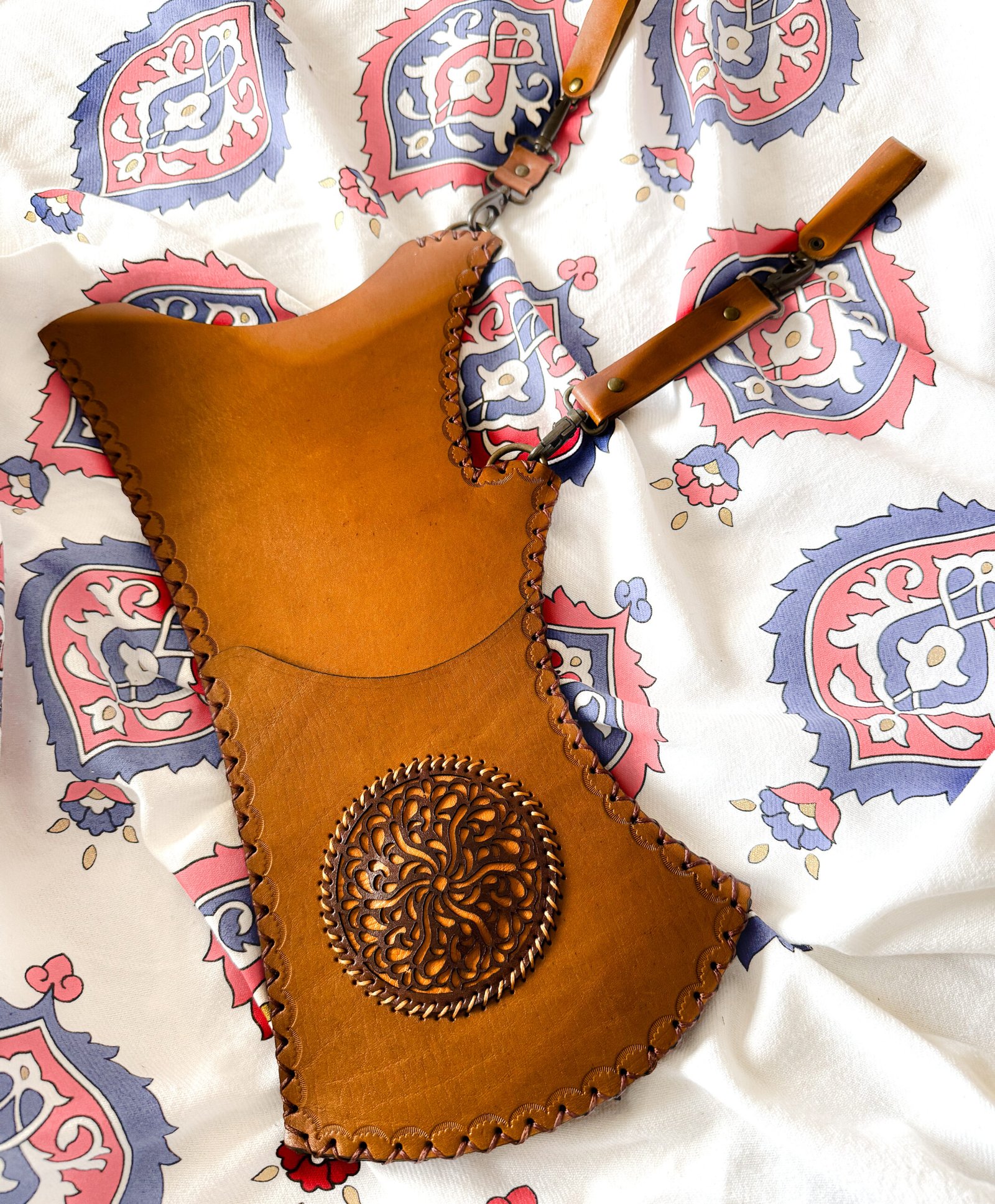 Material: Thick genuine leather (available in deep brown), hand-stitched.